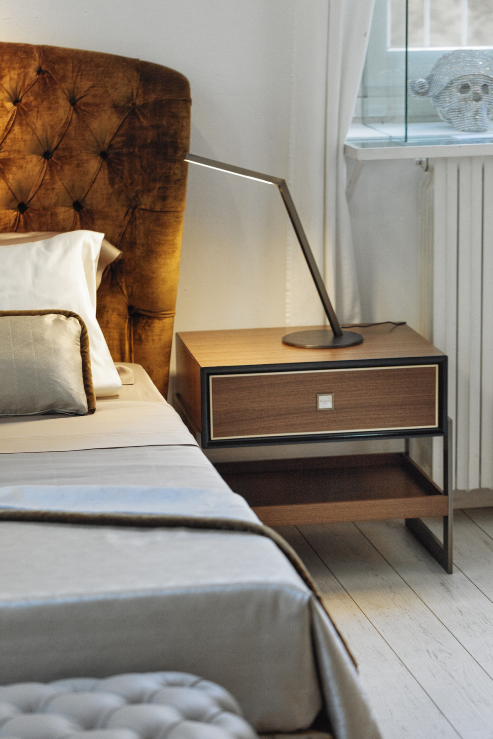 Lo stile impeccabile dei tavoli in noce canaletto guida il visitatore verso la proposta notte di BalckTie: il letto Savoi in capitonnè lavorato a mano può indurre solamente a sfavillanti sogni d’oro. Una collezione dal carattere sempre forte, per chi sa che l’eleganza risiede nell’insieme armonioso di esclusivi dettagli, perfettamente studiati da un gran direttore d’orchestra.