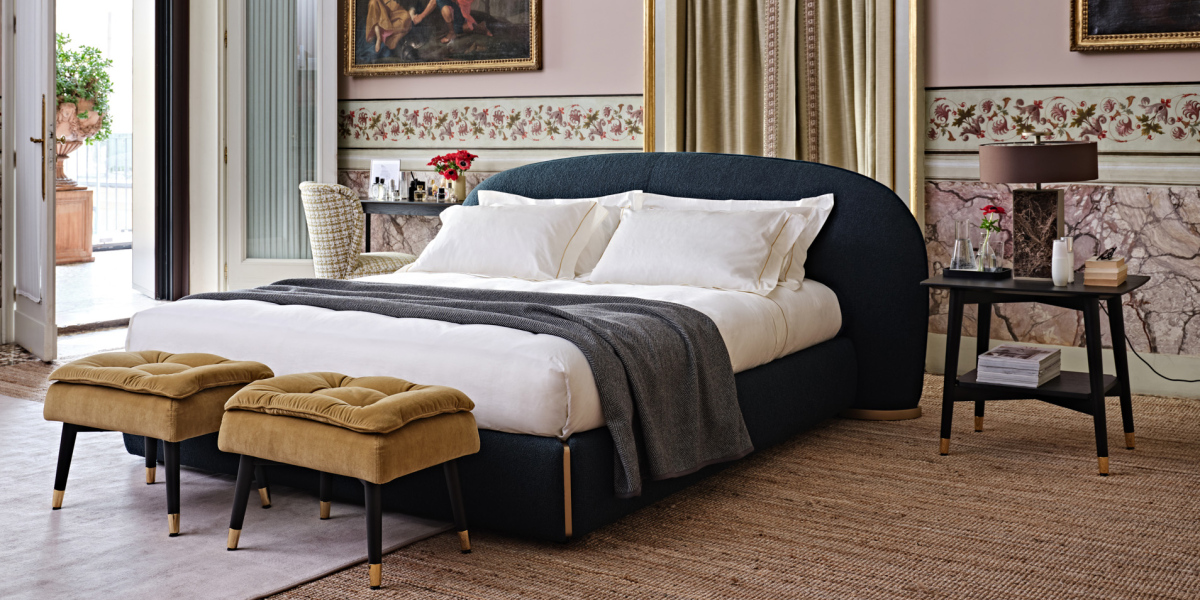 La semplicità delle linee, l’elegante sostanza della funzione: Toledo incarna la perfetta essenza del letto imbottito. I ricercati tessuti sfoderabili sono rifiniti nel bordo in raffinato contrasto cromatico, che rendono ancor più prezioso e leggero il disegno della testiera. Gli inserti in finitura oro opaco donano ulteriore eleganza strutturale alla composizione: perché nell’intimità della camera da letto, anche il più piccolo particolare fa la differenza.