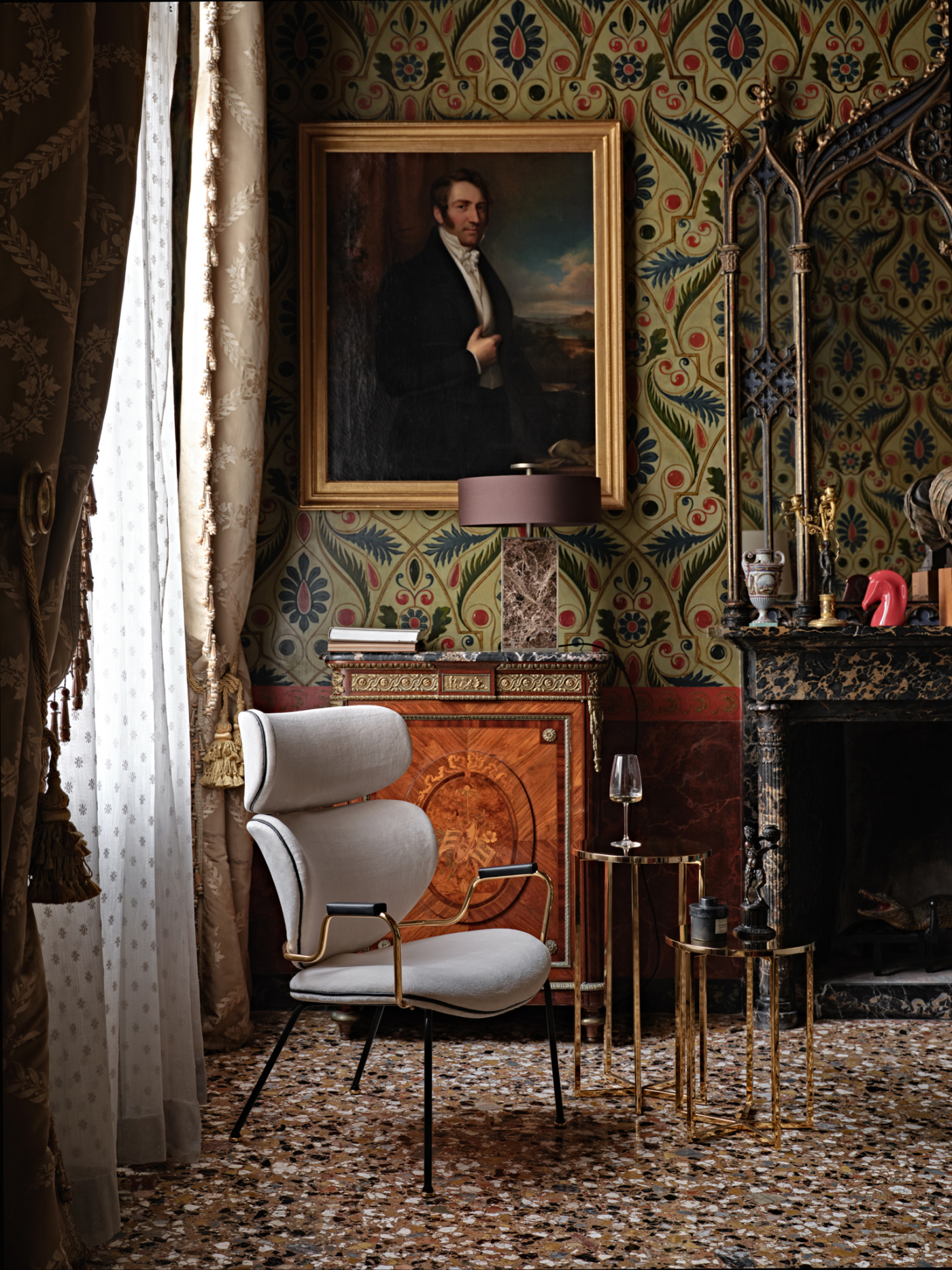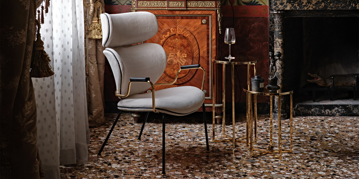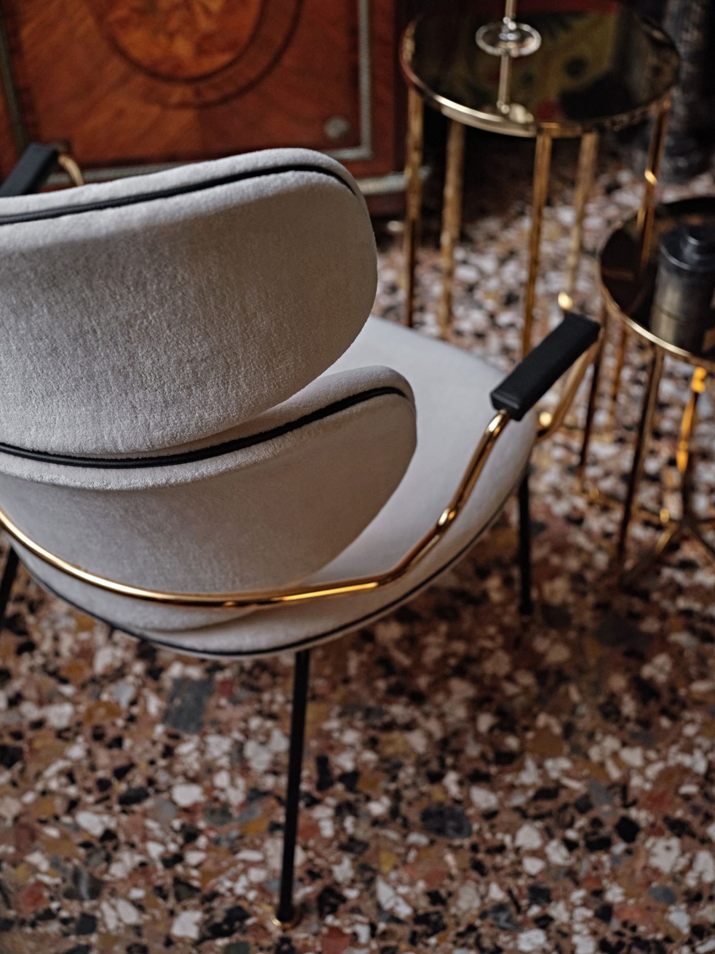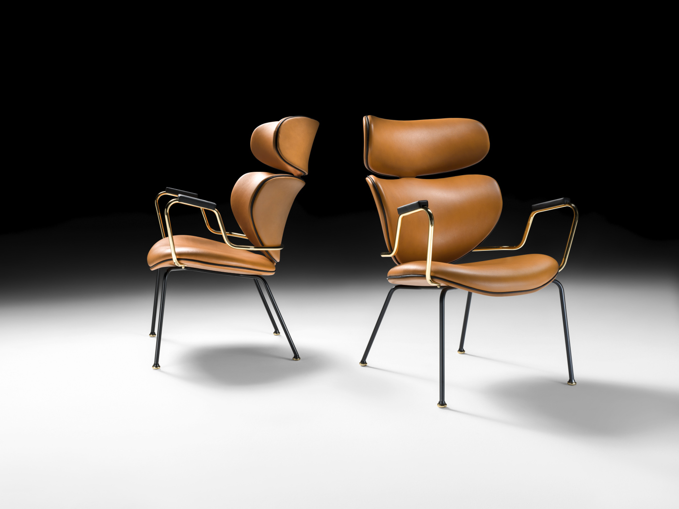 Asia, nella sua rigorosa austerità, è una poltrona dallo spirito office che sa conferire anche al contesto domestico un’aurea di regale e calibrato relax. Il morbido pellame si adagia alla linee sinuose delle forme, che accolgono una seduta confortevole, impreziosita ulteriormente dal dettaglio del bracciolo in finitura oro lucido che cinge con delicata leggerezza lo schienale. La struttura delle gambe sorregge con padronale rigore la seduta e si lascia impreziosire dal dettaglio del piedino in oro lucido, in dialogo con la sottile eleganza dell’elemento bracciolo.