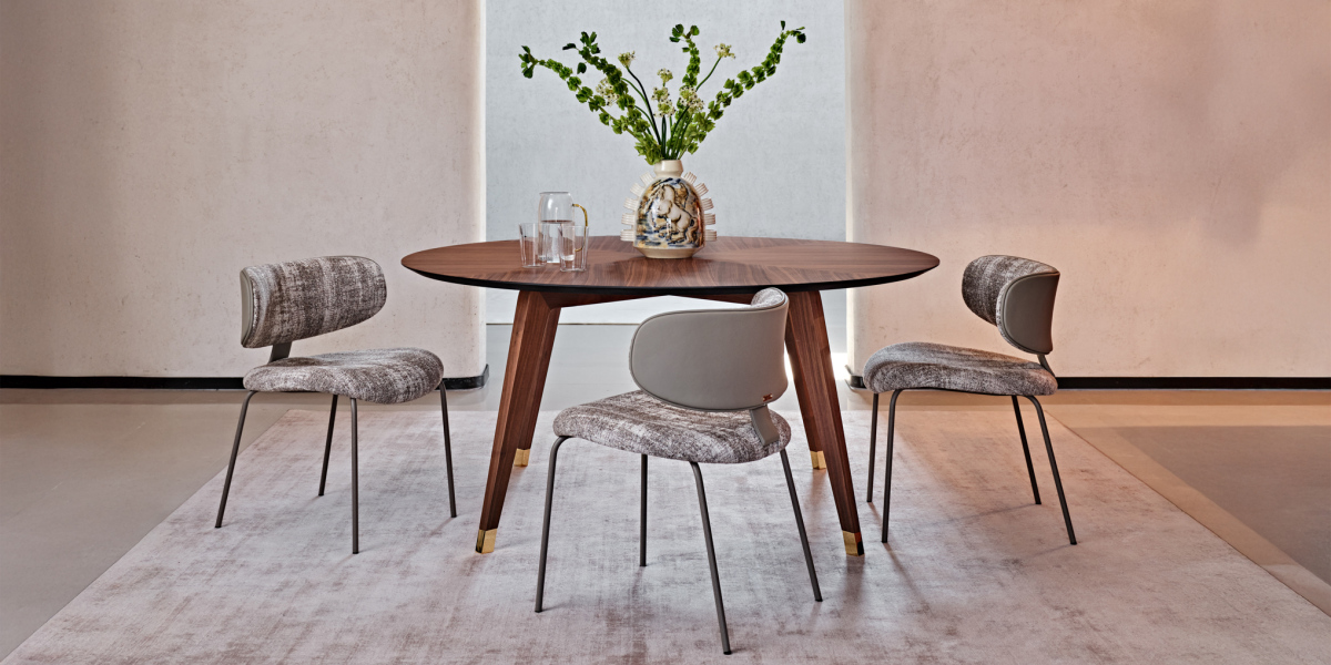 Semplicemente essenziale: Natalia è pura forma e tessuto. L’inclinazione della seduta si accompagna in modo armonico e complementare allo schienale, che avvolge e sostiene con delicata eleganza. La qualità dei tessuti e dei pellami, personalizzabili su una variegata e pregevole scelta di finiture, è ulteriormente impreziosita dai richiami dei dettagli in ecopelle, che accompagnano con armonia la struttura in metallo verniciato.