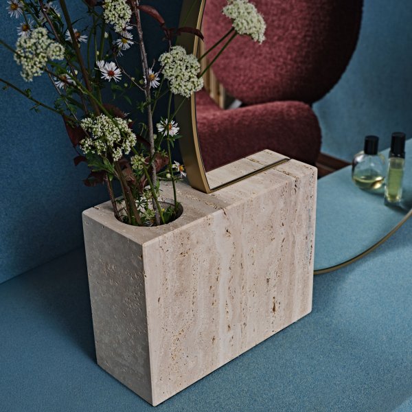 Nel fluire continuo tra ciò che vediamo e ciò che sentiamo, Tìam Mirror Pot nasce come una nuova espressione di design, un oggetto che supera la sua funzione per diventare esperienza. Non più solo specchio, non solo vaso, ma un’interpretazione poetica della dualità tra forma e significato. Con Mirror Pot, le designer Claudia Campone e Martina Stancati ampliano il racconto di Tìam, dando vita a una nuova presenza da tavolo, in cui il riflesso si intreccia con la natura. La superficie specchiante, nitida e avvolgente, si solleva dalla sua base solida per accogliere fiori, foglie, frammenti di vita che amplificano la percezione dello spazio.