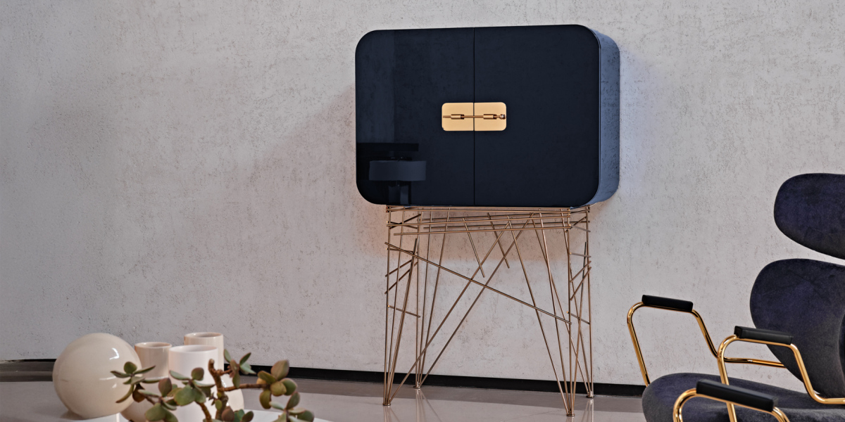 Un mobile iconico, pensato per chi vuole regalarsi preziosi momenti di relax e mescolare brindisi a conversazioni intriganti. Mai Tai è eleganza e struttura: le gambe in oro lucido o cromo scuro si intrecciano in un gioco leggero e perfetto che, come un climax, elevano la madia, in scintillanti colori. Il dettaglio della nuova maniglia leggera quanto funzionale, foriera di pregiati contenuti; e infine l’interno, anch’esso rivisitato, con luce e specchi a immortalare l’espressione compiaciuta di chi avrà il piacere di miscelare i drink al cospetto di questo indimenticabile mobile bar.