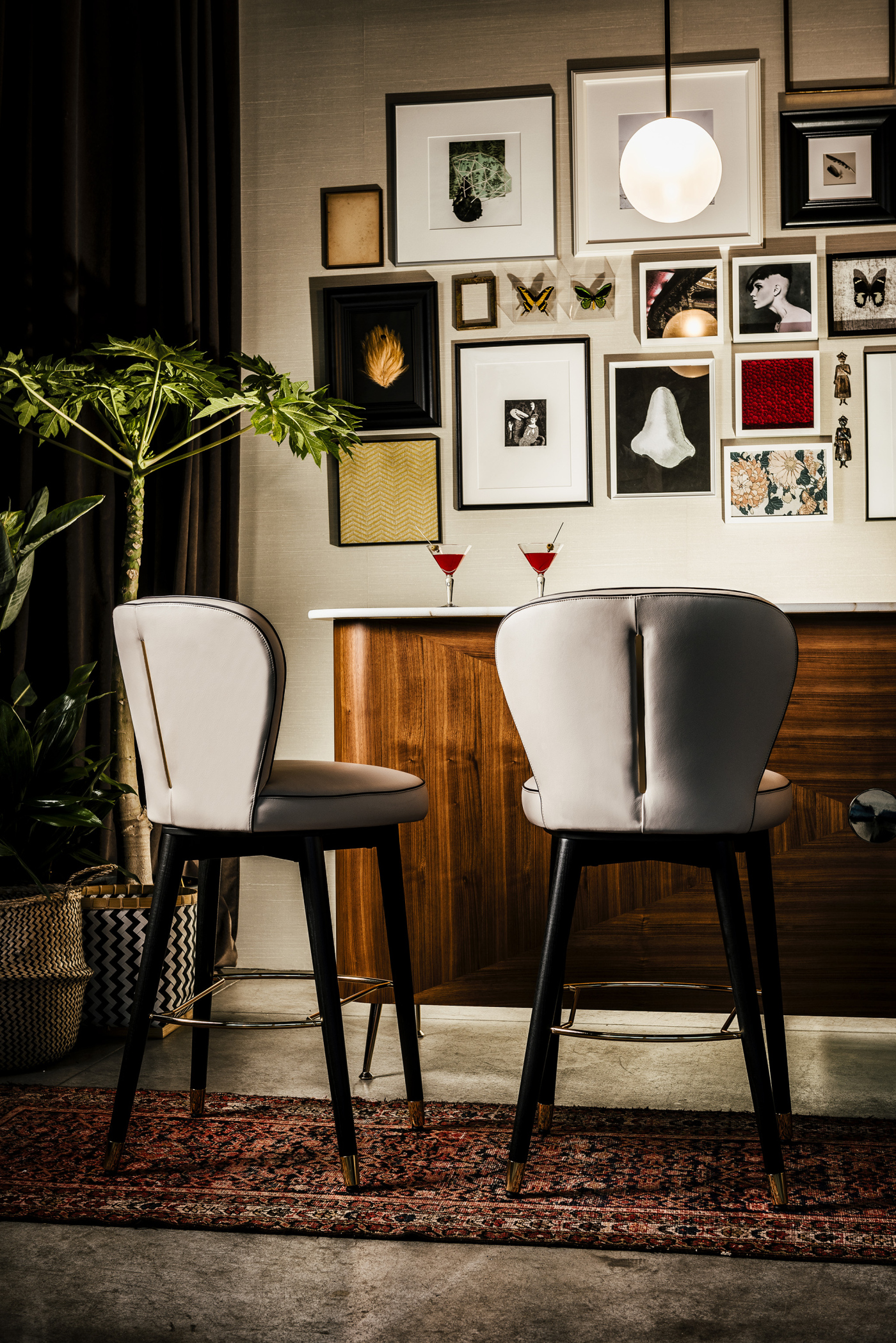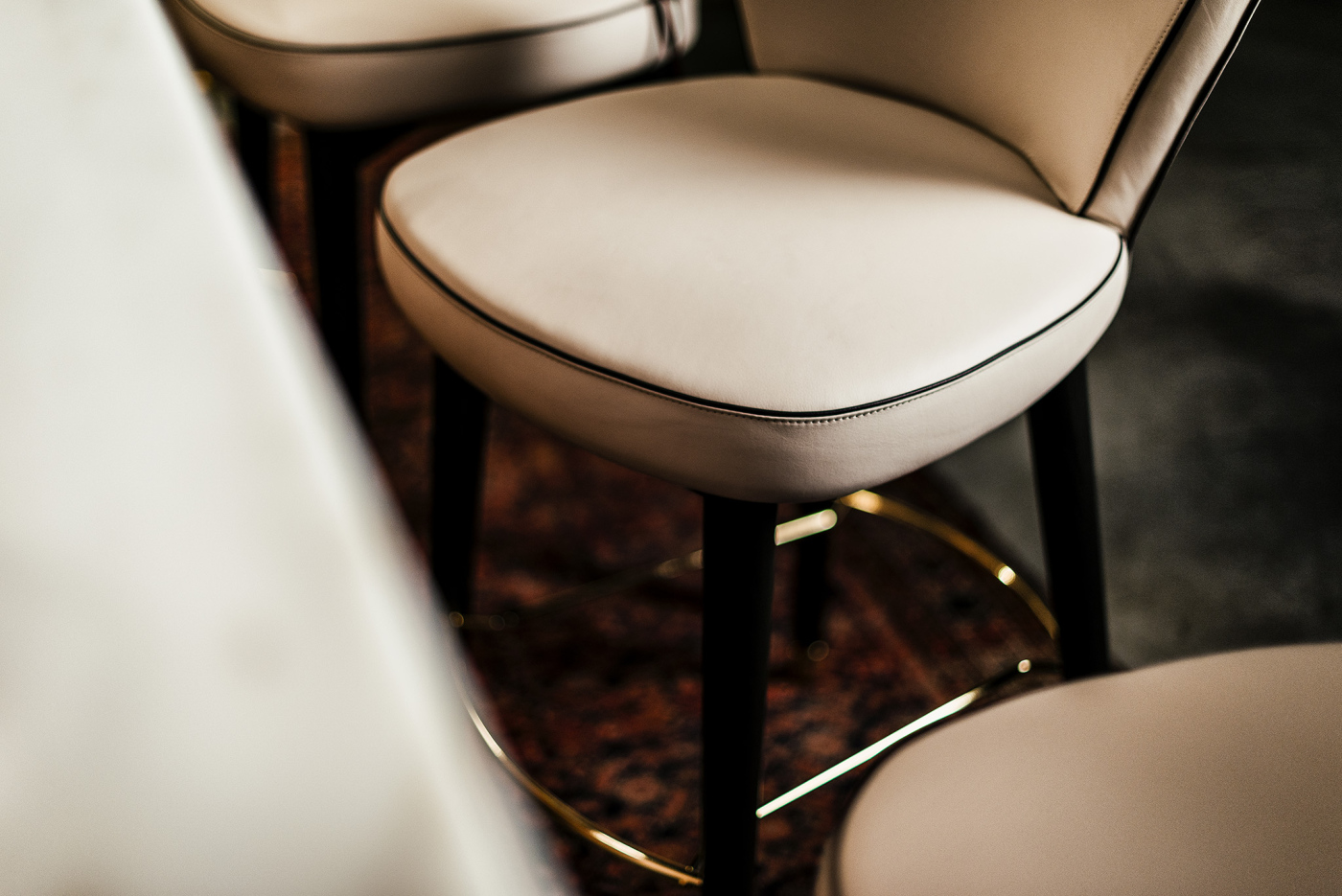 The Made in Italy touch is unmistakable and helps make this chair not only an element of innate modern beauty, but also a sophisticated must-have for refined design lovers. The comfortable and spacious seat rests on legs made of solid stained moka ash wood or canaletto walnut. The feet upholstered with glides in polished gold or dark bronze matt finishing, give the structure a touch of delicate charm. A concentrate of Italian excellence to be experienced.