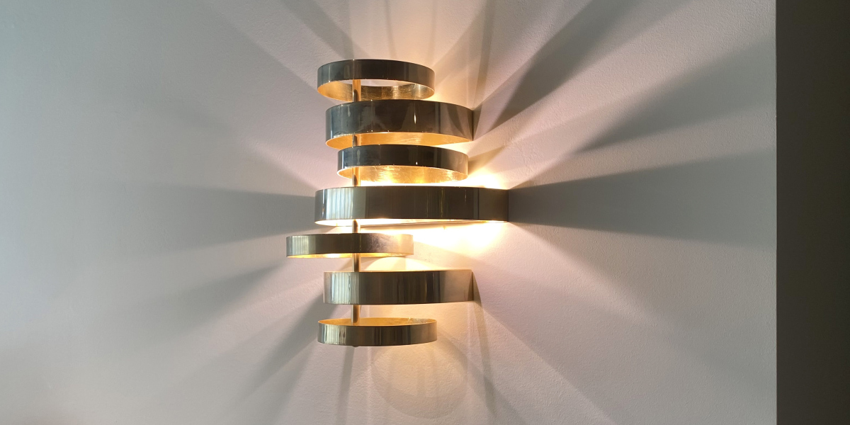 The balance of forms of the Olimpia ceiling chandelier is declined with refined delicacy in the wall version: thus Olly is born, which leans elegantly against the wall and diffuses its descending and diffused light, creating harmonious plays of elongated shadows.