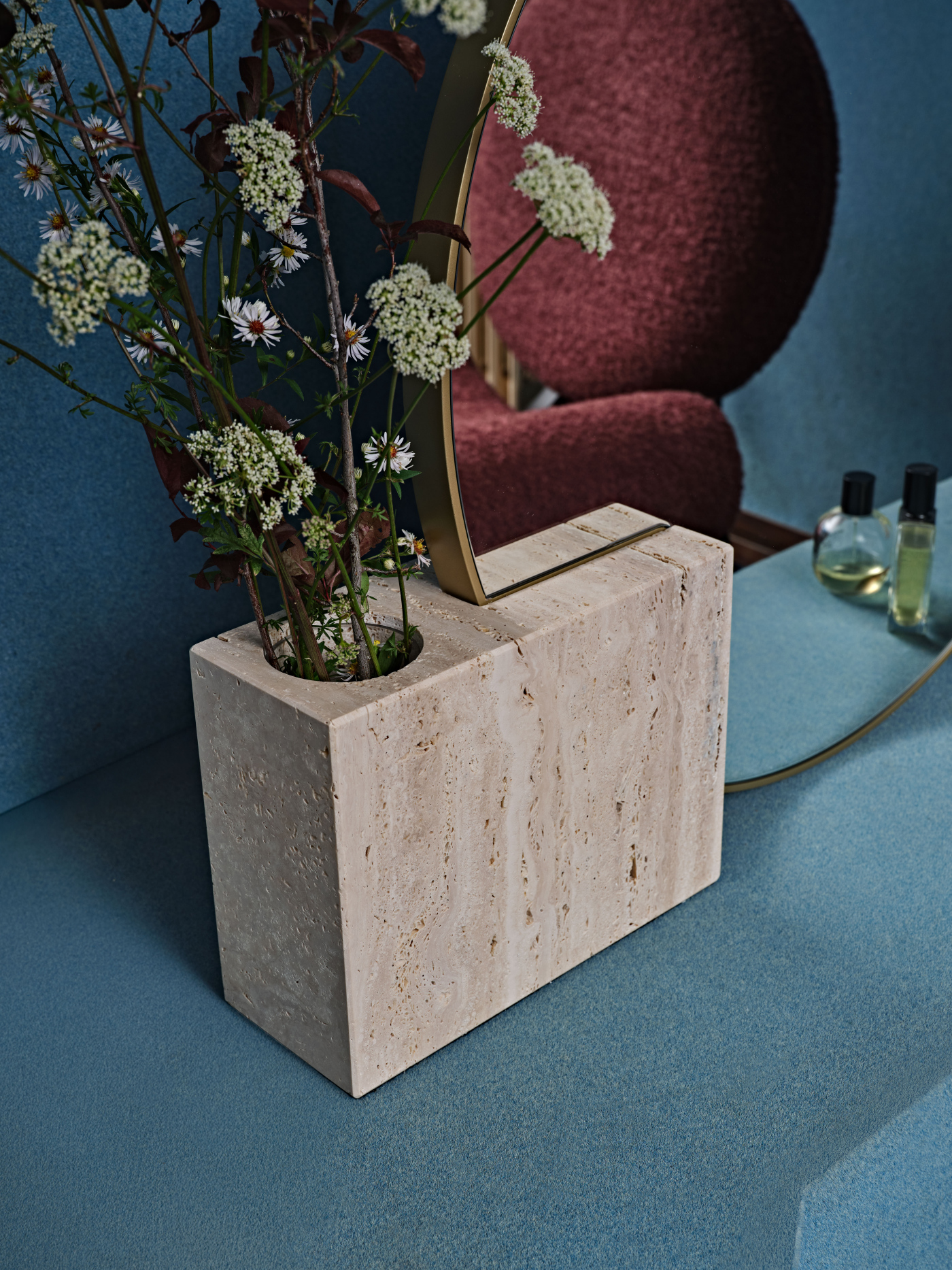 In the continuous flow between what we see and what we feel, Tìam Mirror Pot was born as a new expression of design, an object that transcends its function to become experience. No longer just a mirror, not just a vase, but a poetic interpretation of the duality between form and meaning. With Mirror Pot, designers Claudia Campone and Martina Stancati expand the narrative of Tìam, creating a new table presence in which reflection is intertwined with nature. The mirrored surface, sharp and enveloping, rises from its solid base to accommodate flowers, leaves, fragments of life that amplify the perception of space.