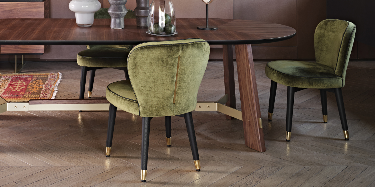 Il tocco del Made in Italy è inconfondibile e contribuisce a rendere questa sedia non solo un elemento di innata bellezza moderna, ma anche un raffinato must have per gli appassionati del design ricercato. La comoda e spaziosa seduta poggia su gambe ottenute da solido legno di frassino tino moka o noce canaletto. I piedi, rivestiti con puntale in oro lucido o bronzo scuro opaco, conferiscono alla struttura un tocco di fascino discreto. Un concentrato di eccellenza italiana tutta da vivere