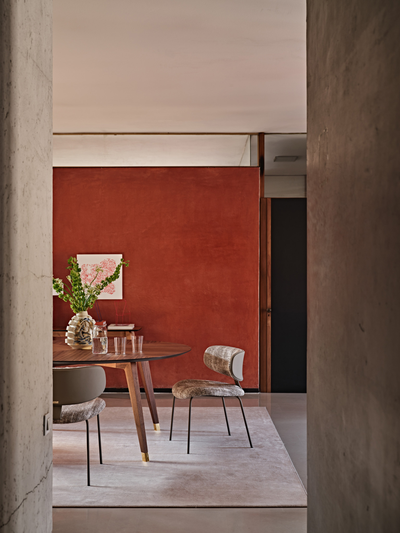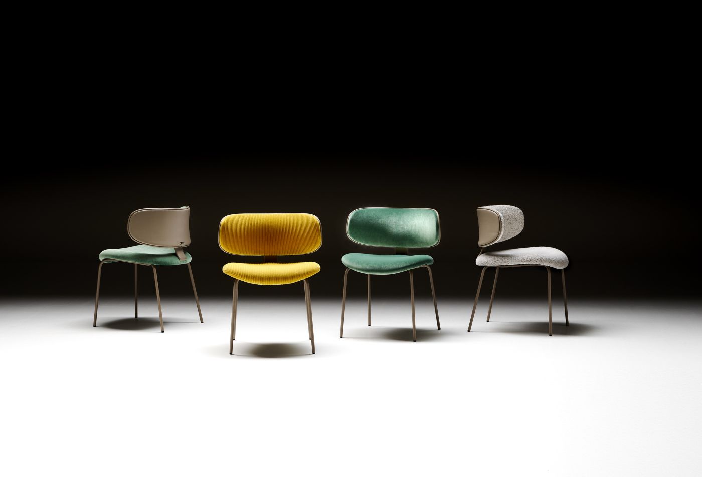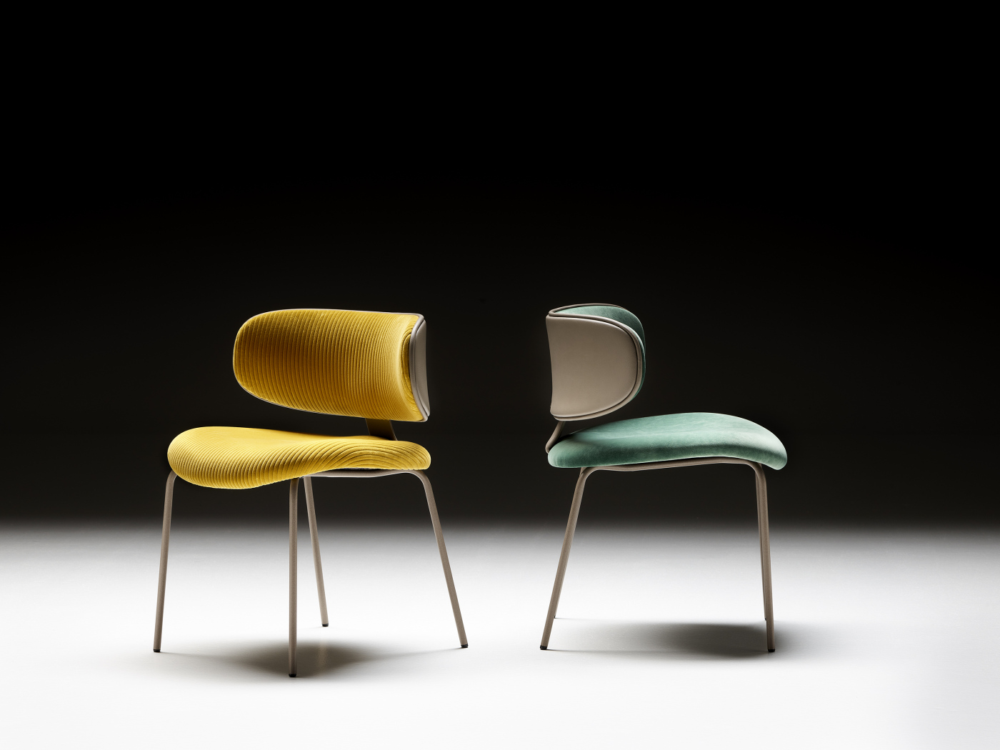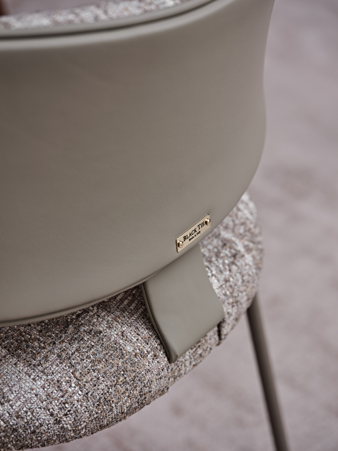 Semplicemente essenziale: Natalia è pura forma e tessuto. L’inclinazione della seduta si accompagna in modo armonico e complementare allo schienale, che avvolge e sostiene con delicata eleganza. La qualità dei tessuti e dei pellami, personalizzabili su una variegata e pregevole scelta di finiture, è ulteriormente impreziosita dai richiami dei dettagli in ecopelle, che accompagnano con armonia la struttura in metallo verniciato.