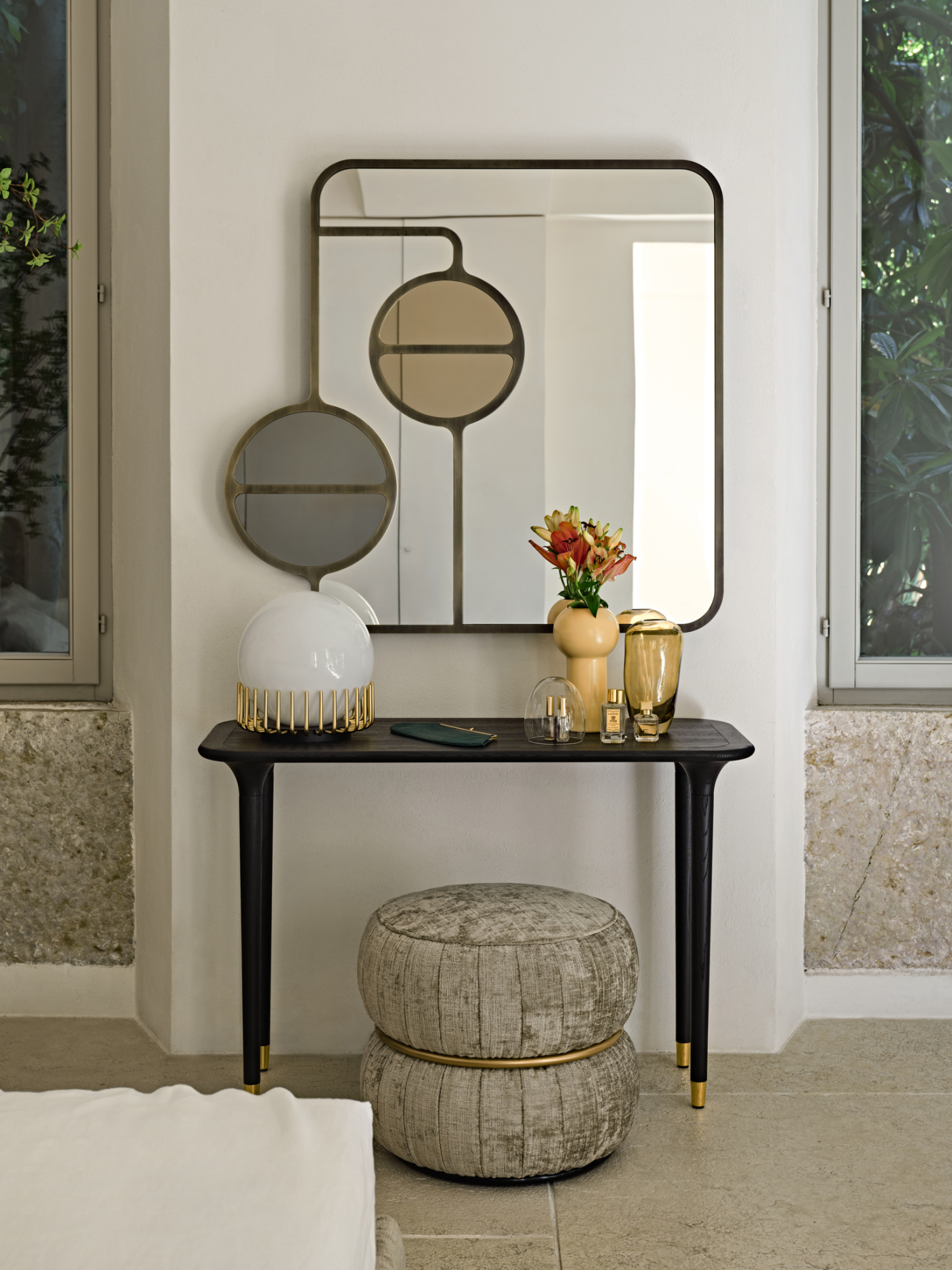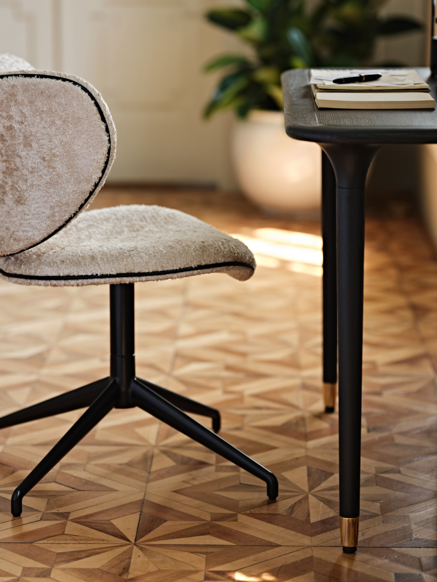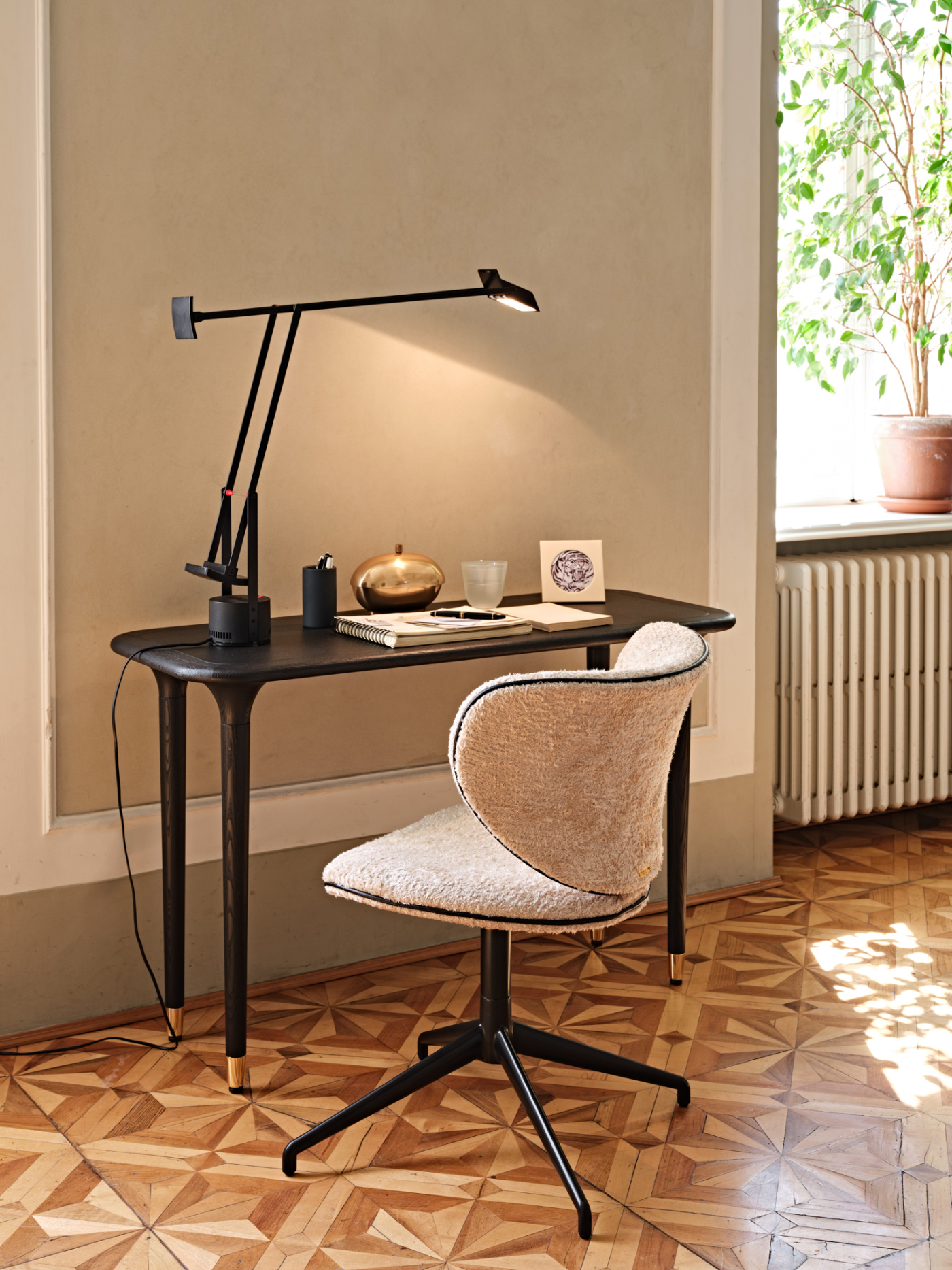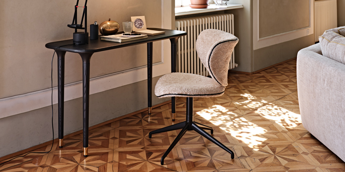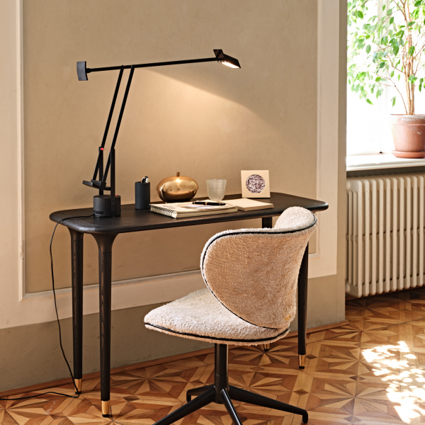 Versatilità che fa rima con eleganza: le linee leggere e rigorose di Livia ne fanno un oggetto la cui funzionalità diventa dettaglio di stile. Leggera e armoniosa, sa inserirsi con delicatezza nell’ambiente, esprimendo nei particolari delle linee e delle finiture la sua importanza. Il puntale in oro racchiude la sua silenziosa e pregiata personalità, sugellando con infinita eleganza la forma sinuosa della gamba dalla slanciata forma conica.
