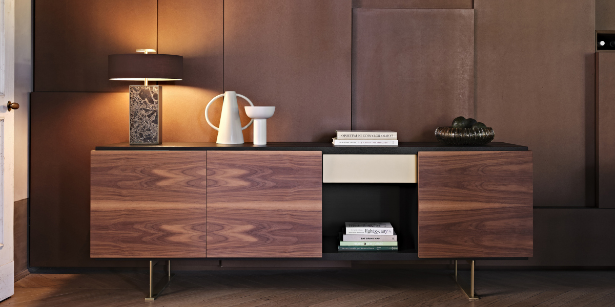 Rigore e sostanza: la madia Sira è un elemento prezioso, che sa inserirsi con silenziosa personalità negli ambienti di pregio, per contenere oggetti segreti, sostenendo gli sguardi più esigenti. La firma dell’insostenibile leggerezza dell’essere eleganti di Black Tie risiede anche nel lusso armonioso delle finiutre: dall’oro opaco dei piedini al noce canaletto delle ante.