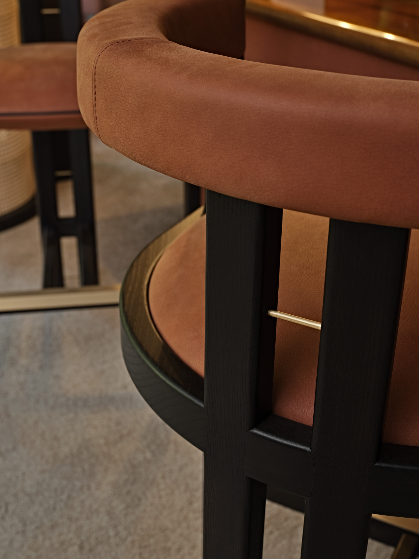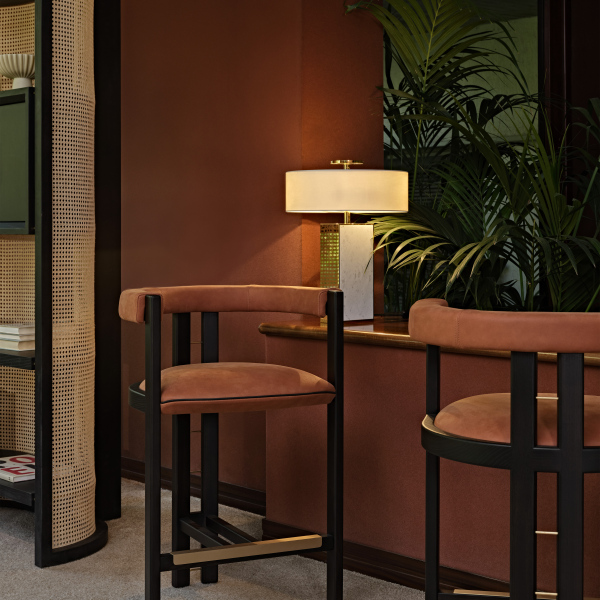 Con le sue finiture in legno massello, stoffe di alta qualità e dettagli dorati, Kumiko è il perfetto com-plemento d’arredo per strutture ricettive o per cre-are interessanti angoli bar dall’aspetto sofisticato ed elegante nella propria casa. Presentato con seduta e schienale imbottiti, è pensato per offrire una bolla di comfort seduti al bancone di un bar, attorno ai tavoli alti di un ristorante, o come ap-poggio provvisorio durante il check-in in hotel.