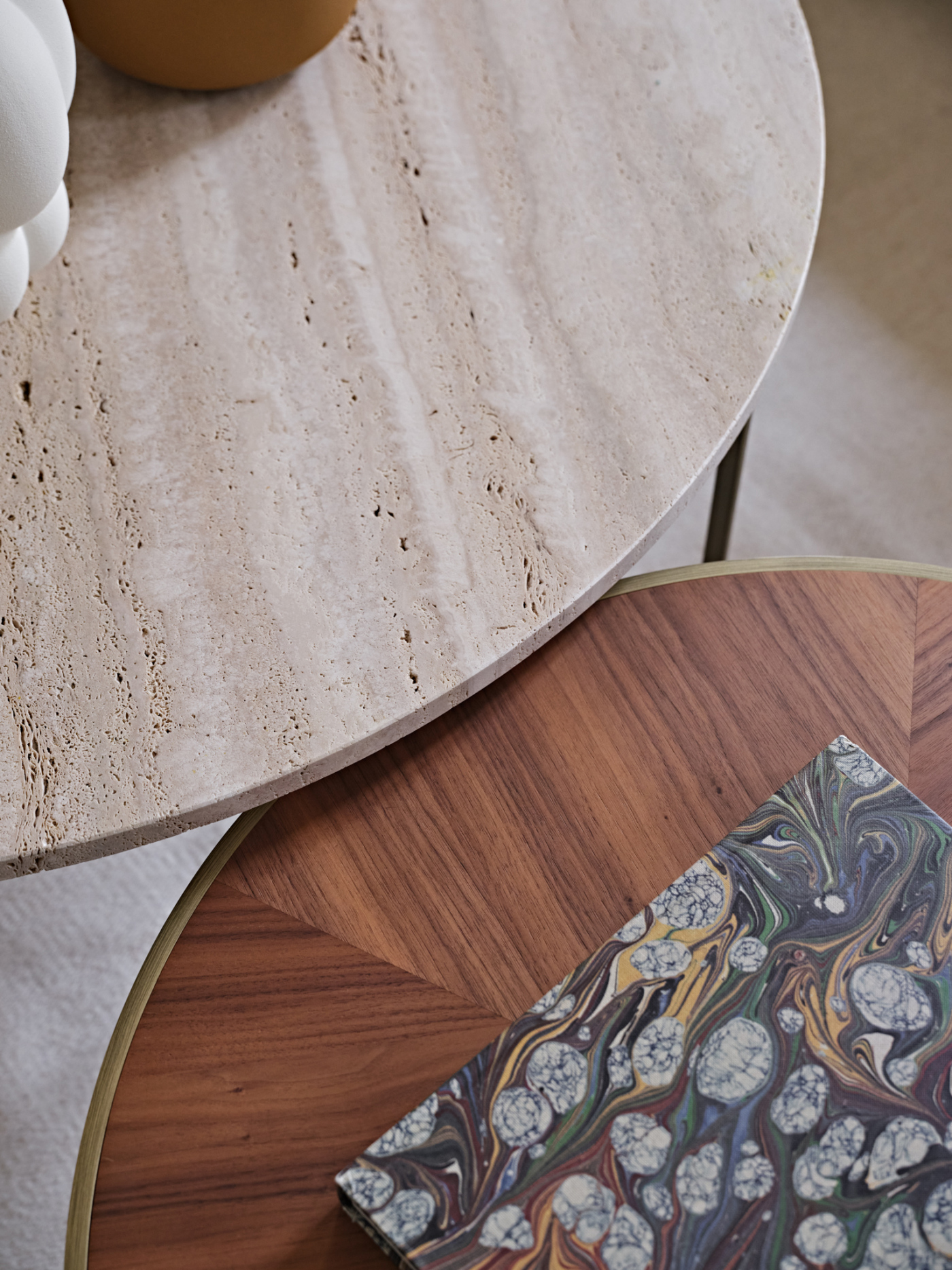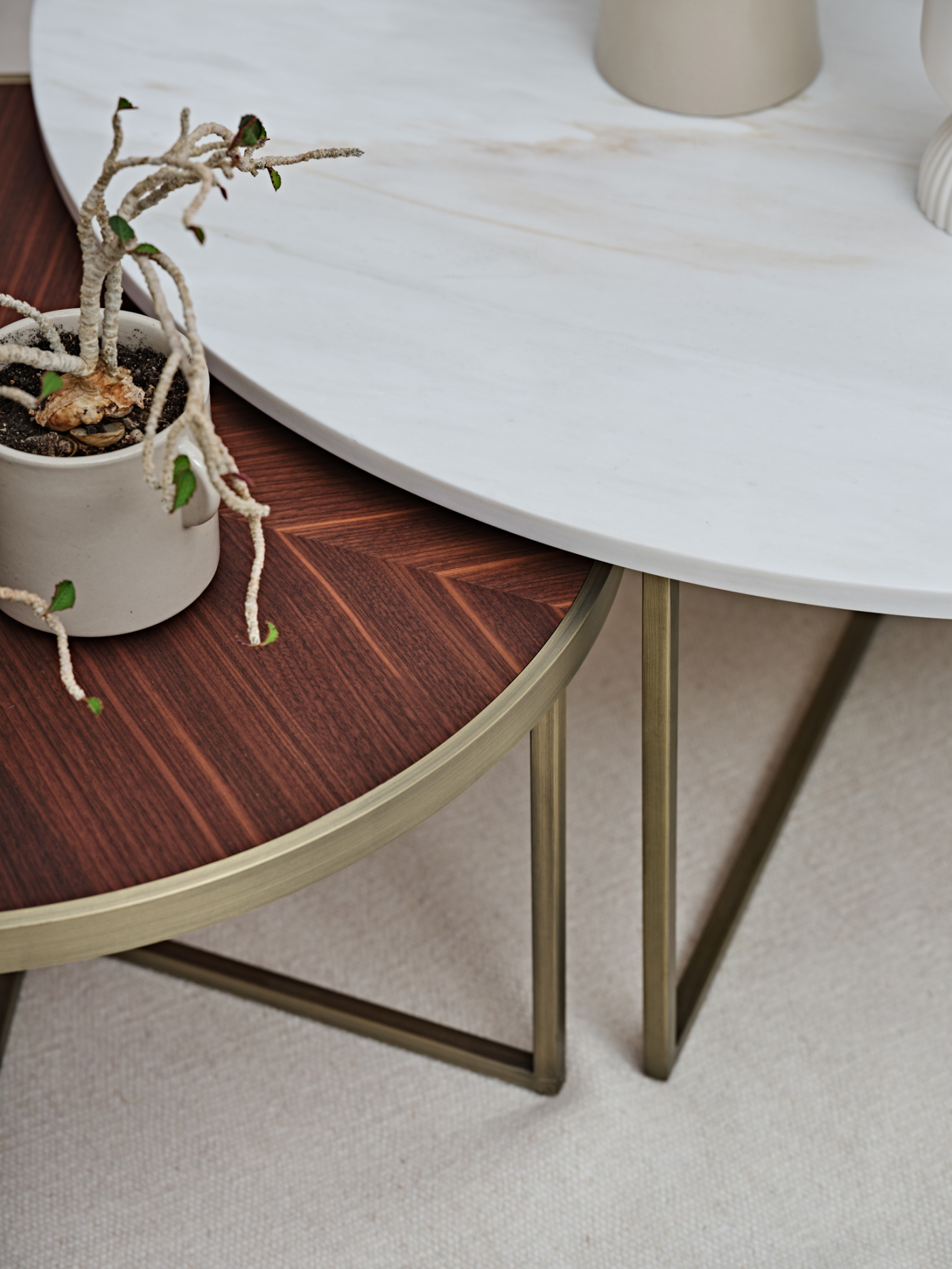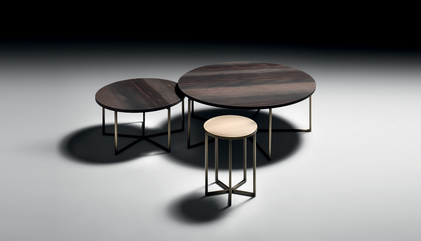 Una danza tra i pianeti. Questa è la prima sensazione che regalano i tavolini Elliot appena si mostrano in tutta la loro eleganza. La struttura in metallo volteggia sinuosa e leggiadra attorno al piano in marmo, corredato da finiture in bronzo scuro opaco. Un'armonia di forme che dona allo stesso tempo praticità e raffinatezza, lasciando spazio a molteplici possibilità di utilizzo e di collocazione. La versione da 35 cm regala, inoltre, la possibilità di avere il top in finitura di bronzo scuro opaco o oro lucido.